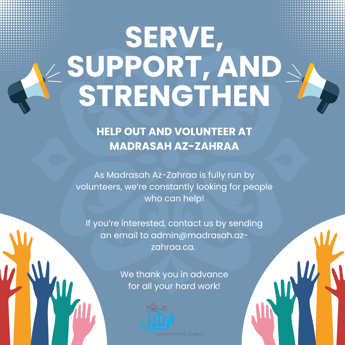 Help out and volunteer at Madrasah Az-Zahraa!